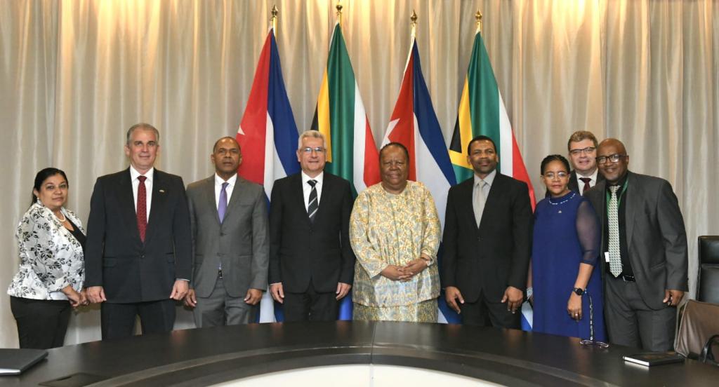 La ministra estuvo acompañada por el embajador Bona, director Jefe para América Latina y el Caribe del Ministerio de Relaciones Internacionales y Cooperación de Sudáfrica. Por la parte cubana, participaron, además, el embajador de Cuba en Sudáfrica, Enrique Orta González y Luis Alberto Amorós Núñez, director de África Subsahariana del Ministerio de Relaciones Exteriores.