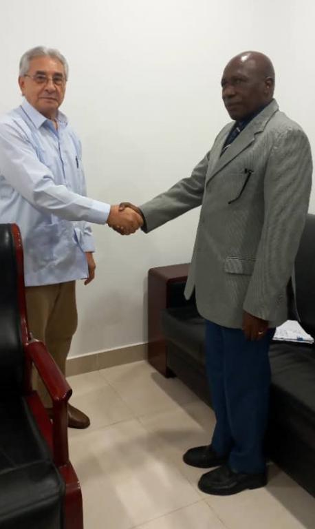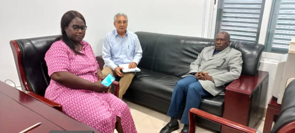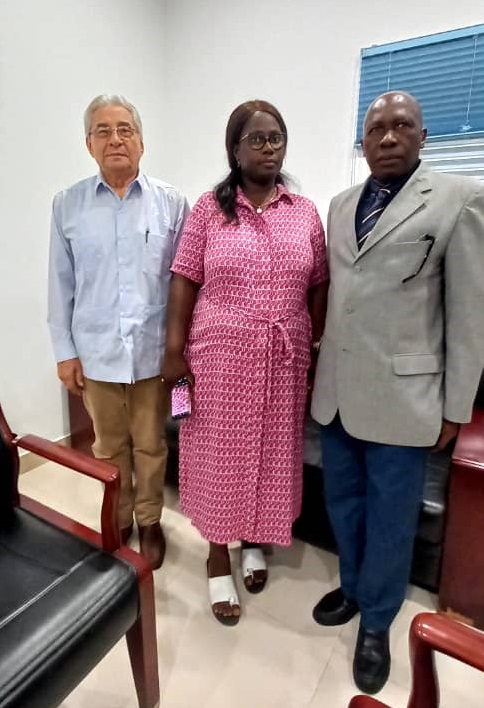 El Director General de Política Externa del Ministerio de Negocios Extranjeros, Cooperación Internacional y de las Comunidades de Guinea Bissau, Dr. Boubacar DABO, recibió en la mañana de este martes en la cancillería guineense al Embajador de Cuba, Dr. C Raúl de la Peña Silva y reiteró el apoyo a Cuba en su lucha por el levantamiento del bloqueo económico, comercial y financiero impuesto por el gobierno de los Estados Unidos y a la eliminación de la lista de países patrocinadores del terrorismo. Su excelencia, el Embajador Dr. Boubacar, estuvo acompañado por la Dra. Mariama Camará, Directora de Asuntos Bilaterales.
