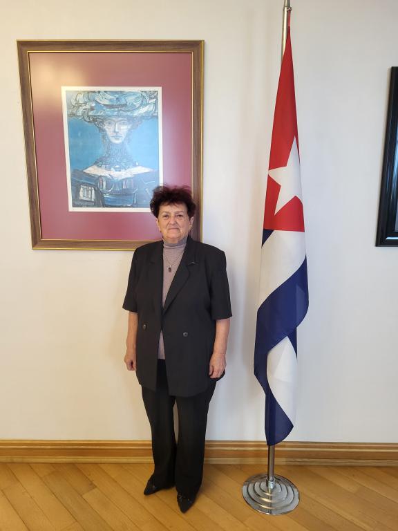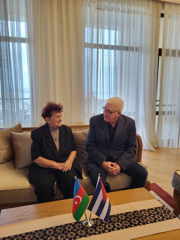 La embajadora de la Paz de las Naciones Unidas, Larisa Reijrudel, presidenta de la organización de mujeres hebreas de Azerbaiyán, visitó en la tarde de hoy la Embajada de Cuba en Azerbaiyán.