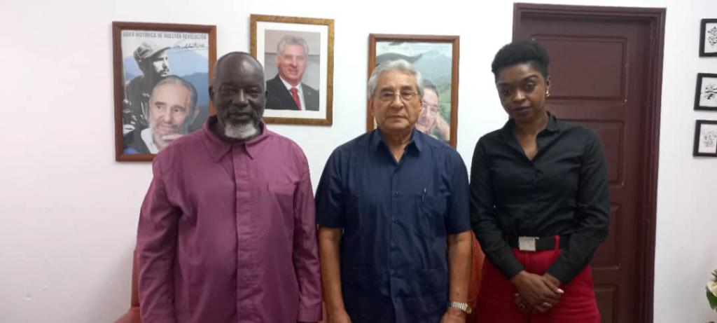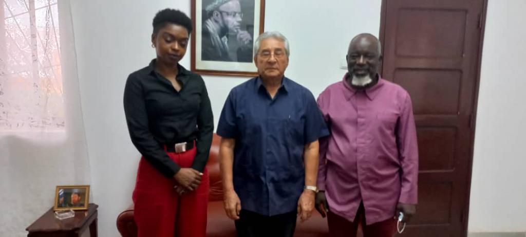 El Embajador de Cuba en Guinea Bissau, Dr C. Raúl de la Peña Silva recibió a la Directiva de la Confederación Nacional de Productores de Cajú de Guinea Bissau, representada por su Vicepresidente, Ing. Jaime Boles Gomes y por la Sra. Sallya Ture Cabral, Gestora Administrativa y Comercial de dicha confederación, los cuales agradecieron a Cuba por el apoyo a su país en la lucha por la independencia, alcanzada el 24 de septiembre de 1973, próximo a cumplir su 50 Aniversario, y por el papel que ha jugado a través de estos años en la formación y capacitación de los cuadros y profesionales para las diferentes ramas de la economía y la vida social del país, muy especial en la formación de médicos para el sistema de salud guineense a través de la Facultad de Medicina “Raúl Díaz Argüelles”.