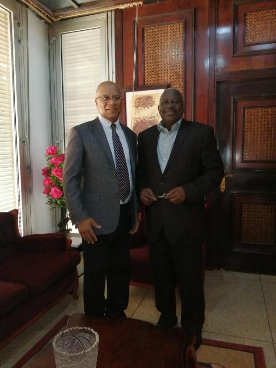 El embajador de la República de Cuba, Carlos Moya Ramos, recibió a Yaya Cherif y Doura Cherif, egresados en 1973 del Instituto Politécnico de Conakry.