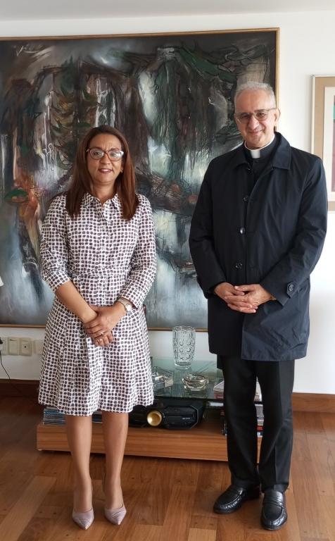 En la mañana de hoy, la embajadora de Cuba, Zulan Popa Danel, recibió en visita de cortesía a S.E. Mons. Gianfranco Gallone, nuevo Nuncio Apostólico en el Uruguay.