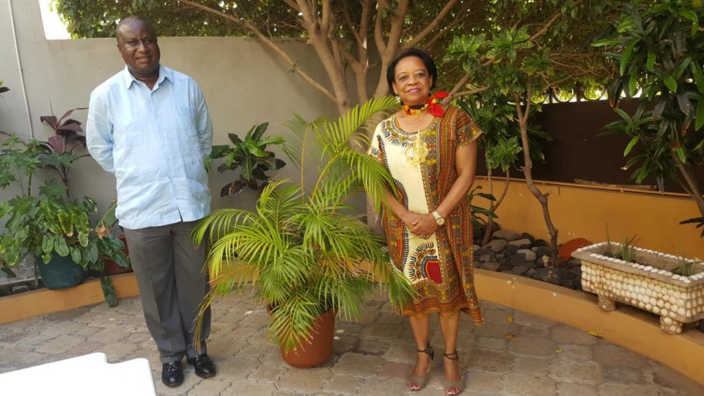 La embajadora, Rosa Wilson, recibió en la Residencia de Cuba al embajador de Guinea-Bissau en Cabo Verde, Excmo. Sr. M'Bala Alfredo Fernandes, quien concluye su misión diplomática en este país luego de varios años de trabajo. Otro destino contará con su valiosa experiencia diplomática y alta sensibilidad humana.