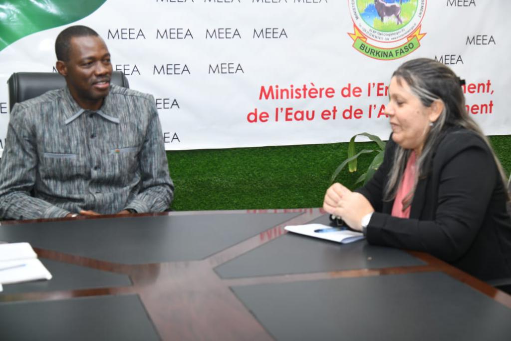 Ouagadougou, 3 de octubre de 2025.-El Ministro de Medio Ambiente, Agua y Saneamiento de Burkina Faso, Excmo. Sr. Roger Baro, recibió en audiencia este viernes a la Embajadora de Cuba, Enith Perez Retureta en la sede del Ministerio de Medio Ambiente en la capital de este hermano país.