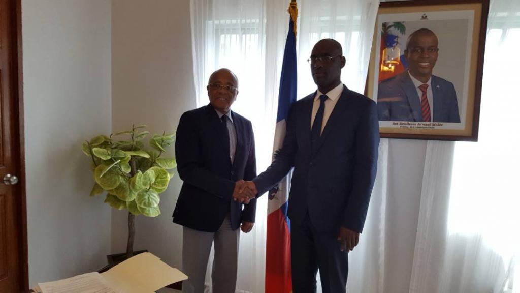 Puerto Príncipe, 8 de mayo de 2017- El ministro de Planificación y de Cooperación Externa de la República de Haití, Aviol Fleurant, recibió al Embajador de Cuba, Luis Castillo Campos, con el fin de intercambiar sobre la colaboración cubana en la hermana nación caribeña y las perspectivas de la misma en los diferentes sectores.