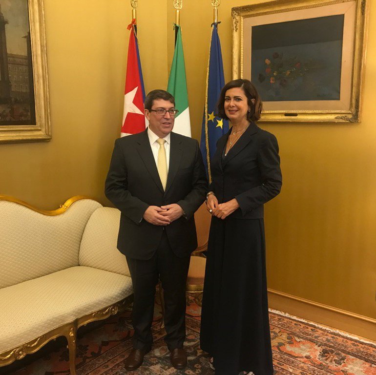 El Ministro de Relaciones Exteriores de Cuba, Bruno Rodríguez Parrilla, fue recibido en el Palacio Montecitorio, sede de la Cámara de Diputados, por la presidenta, Laura Boldrini.