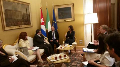 Rodríguez Parrilla agradeció la contribución de Italia en el avance de las relaciones entre Cuba y la Unión Europea que concluyó con la firma del Acuerdo de Diálogo Político y de Cooperación.