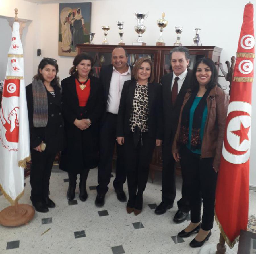 Túnez, 28 de febrero de 2019. El embajador cubano Isaac Torres Barrios visitó en la mañana del jueves la sede de la Unión Nacional de Mujeres Tunecinas, donde fue recibido por su presidenta abogada Radhia Jerbi, junto a otras miembros del Buró Ejecutivo de esa Organización, con quienes sostuvo un fraternal intercambio sobre temas de interés bilateral.