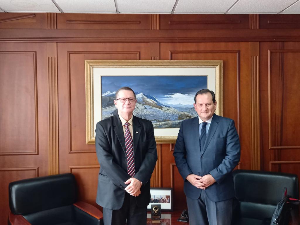 Quito, 23 de febrero de 2022. El Embajador de Cuba Basilio Gutiérrez García sostuvo un fraternal encuentro con el Embajador Diego Morejón, subsecretario de Asuntos Multilaterales de la Cancillería ecuatoriana.