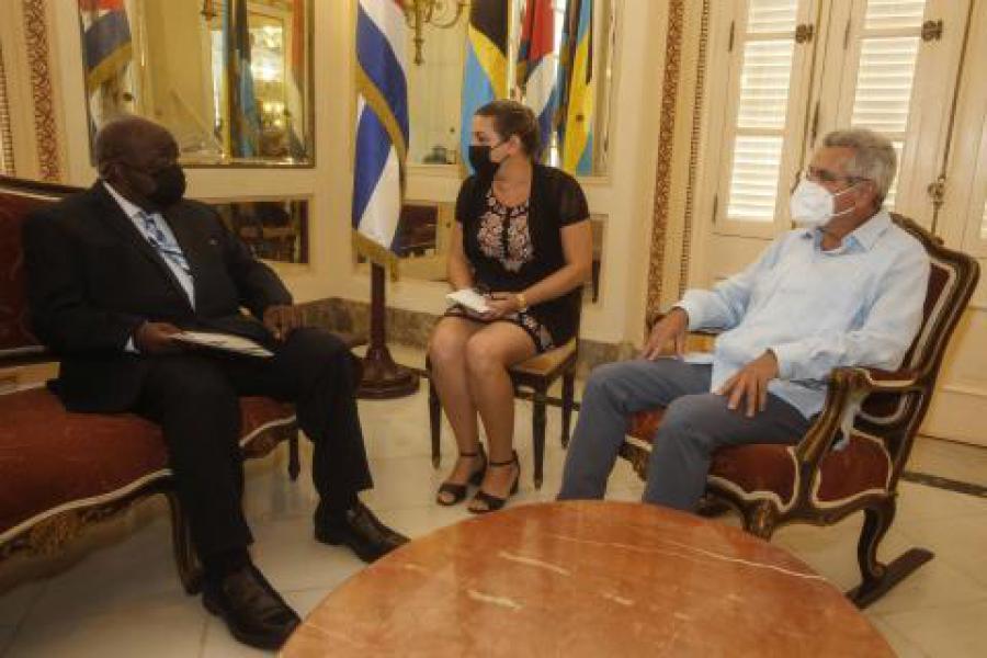 La Habana, 13 de abril de 2022.- El viceministro de Relaciones Exteriores de Cuba, Elio Rodríguez Perdomo, recibió este miércoles, en la sede de la Cancillería cubana, al Excmo. Sr. Dr. Elliston Rahming, Embajador Extraordinario y Plenipotenciario de la Mancomunidad de las Bahamas.