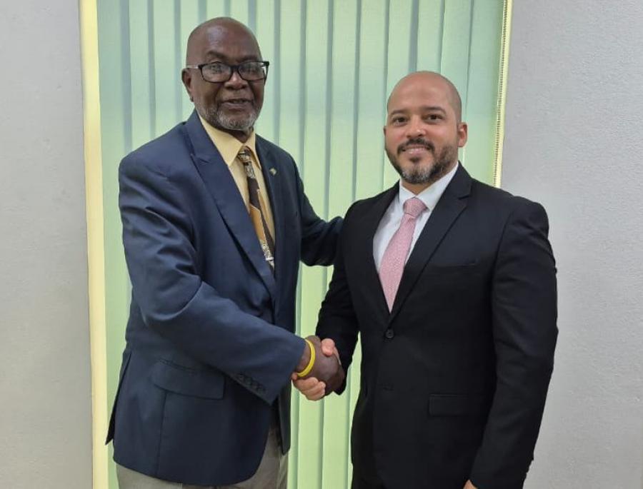 Kingstown, 22 de enero de 2026— El Honorable St. Clair Leacock, viceprimer ministro y ministro de Seguridad Nacional y Gestión de Desastres e Inmigración de San Vicente y las Granadinas, recibió esta mañana al embajador de la República de Cuba en este país, Carlos Ernesto Rodríguez Etcheverry.