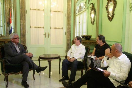 CUBA, 29 de agosto de 2018.- El Ministro de Relaciones Exteriores, Bruno Rodríguez Parrilla, recibió en la mañana de este miércoles en la sede de la Cancillería, al Señor Patrick Andrews, viceministro de Relaciones Exteriores de Belice, quien visita nuestro país para participar en la I Ronda de Conversaciones Migratorias entre La Habana y Belmopán.