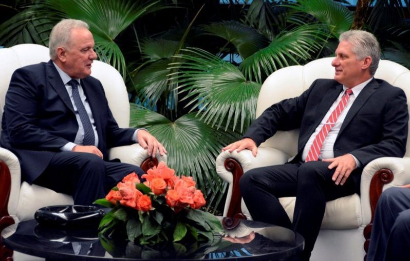 El Presidente de los Consejos de Estado y de Ministros, Miguel Díaz-Canel Bermúdez, recibió en la tarde de este viernes al señor Neven Mimica, comisario de Cooperación Internacional y Desarrollo de la Unión Europea, quien realiza una visita de trabajo a nuestro país para participar en el Foro de Negocios Cuba, que sesionó durante el día de hoy en el Hotel Nacional.