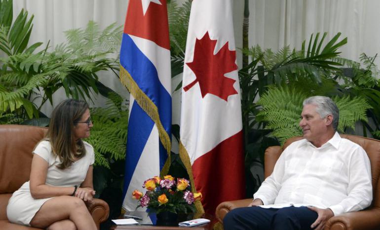 CUBA, 29 de agosto de 2019.- El Presidente de los Consejos de Estado y de Ministros, Miguel Díaz-Canel Bermúdez, recibió este miércoles a la ministra de Relaciones Exteriores de Canadá, la Honorable Chrystia Freeland, quien realiza una visita de trabajo a nuestro país.