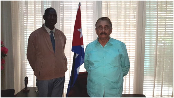 El Embajador de la República de Cuba recibió al nuevo Embajador de la República de Guinea en La Habana, General Aboubacar Sidiki Cámara, quien próximamente viajara a Cuba para presentar sus credenciales. En el encuentro se analizó el estado de las relaciones entre los dos países, los asuntos pendientes de ejecución y las perspectivas del fortalecimiento de los vínculos de amistad y cooperación bilaterales.
