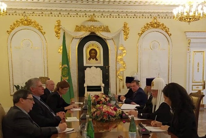 El Presidente cubano expresó la voluntad de continuar consolidando la excelente relación con el Patriarcado de Moscú y toda Rusia y destacó el especial aprecio por el gesto de confianza que significó haber propuesto a La Habana como sede de su encuentro con el Papa Francisco, en 2016.