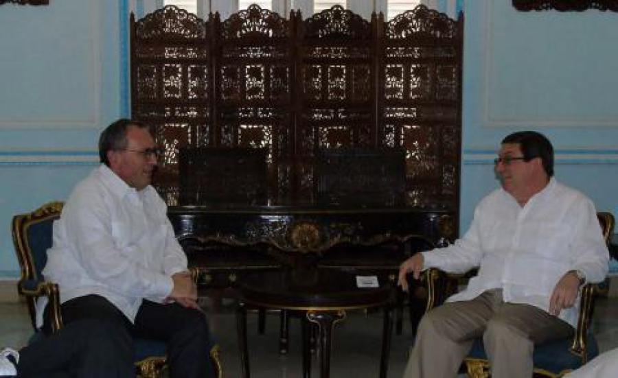 CUBA, 16 de abril de 2019.- El Ministro de Relaciones Exteriores de Cuba, Bruno Rodríguez Parrilla, recibió este martes al Director General de Cooperación Internacional y Desarrollo de la Comisión Europea, Excmo. Sr. Stefano Manservisi, quien presidió la delegación europea que participó en la primera ronda del Diálogo Cuba-UE sobre Desarrollo Sostenible. En un ambiente cordial, ambas partes intercambiaron sobre el estado de las relaciones y ratificaron la voluntad de continuar la efectiva implementación del Acuerdo de Diálogo Político y de Cooperación (ADPC) firmado entre Cuba, la Unión Europea y sus Estados Miembros en 2016, y puesto en vigor provisionalmente el 1ro de noviembre de 2017. En el marco del encuentro, la parte cubana destacó la importancia que le concede a la implementación de la Agenda 2030 y sus 17 Objetivos de Desarrollo Sostenible (ODS) adoptados en Naciones Unidas y resaltó la correlación existente entre los esos objetivos y los 6 Ejes Estratégicos del Plan Nacional de Desarrollo Económico y Social de nuestro país hasta el 2030. Por la Comisión Europea, acompañaron al Sr. Stefano Manservisi, el Jefe de la Delegación de la Unión Europea en Cuba, Alberto Navarro, y la Jefa de la Dirección de México, América Central y Caribe de la Unión Europea, Sra. Katja Aheldt. Por la parte cubana estuvieron presentes la Directora de la Dirección de Europa del MINREX, Alba Soto Pimentel, y la Embajadora de Cuba ante la Unión Europea, Norma Goicochea Estenoz, entre otros funcionarios de la Cancillería. (Cubaminrex).