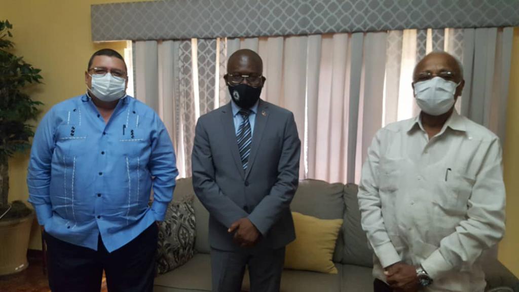 Puerto Príncipe, 26 de septiembre de 2020.- El primer ministro, Joseph Jouthe, recibió al embajador de Cuba, Luis Castillo Campos, quien asistió al encuentro acompañado por el coordinador nacional de la Brigada Médica cubana en Haití, Dr. Luis Orlando Oliveros Serrano.