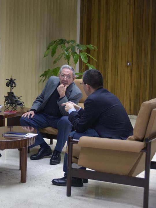 El General de Ejército Raúl Castro Ruz, Presidente de los Consejos de Estado y de Ministros, recibió en horas de la tarde de este jueves al canciller venezolano Jorge Alberto Arreaza Monserrat, quien se encuentra en Cuba en una visita de trabajo como parte de la gira que realizará por varios países de la región.
