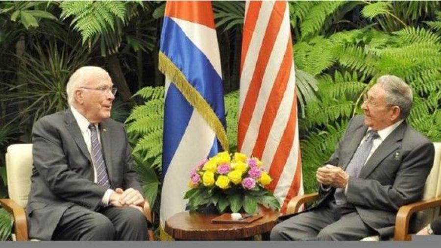 El General de Ejército Raúl Castro Ruz, Presidente de los Consejos de Estado y de Ministros, recibió en la tarde de este martes a una delegación del Congreso de los Estados Unidos encabezada por el senador demócrata por el estado de Vermont, Patrick Leahy.