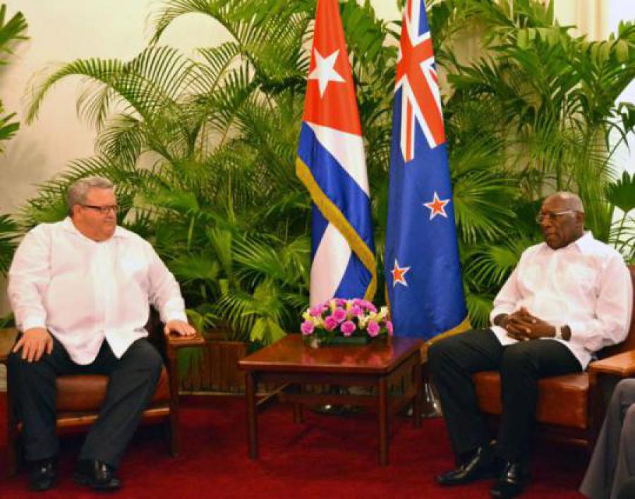 CUBA, 29 de junio de 2017.- El Vicepresidente del Consejo de Estado, Salvador Valdés Mesa, recibió en la mañana de este miércoles al ministro de Relaciones Exteriores de Nueva Zelandia, Honorable Gerry Brownlee, quien realiza una visita oficial a nuestro país.