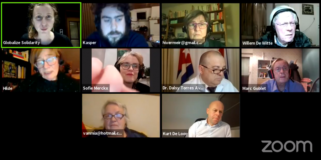 Bruselas, 10 de febrero de 2021// La organización solidaria Cubanismo.be organizó un seminario online, en el marco de la campaña en respaldo a la nominación del Contingente Internacional de Médicos Especializados en Situaciones de Desastre y Graves Epidemias “Henry Reeve” al Premio Nobel de la Paz. La actividad, que se transmitió en vivo a través de la página en Facebook de la organización belga, contó con las participaciones del Dr. Dalsy Torres Ávila, jefe de la misión médica cubana en Azerbaiyán, y los miembros del parlamento federal belga Sofie Merckx, Marc Goblet y Kurt De Loor.