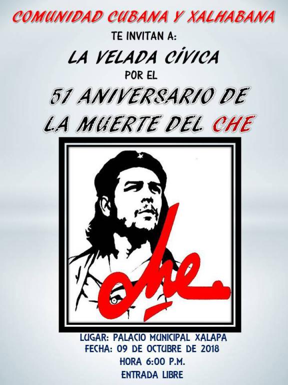 La comunidad cubana y los pobladores de Xalapa en Veracruz dedicaron este 9 de octubre una velada cultural a la memoria del Comandante Ernesto Che Guevara en el 51 aniversario de su asesinato.