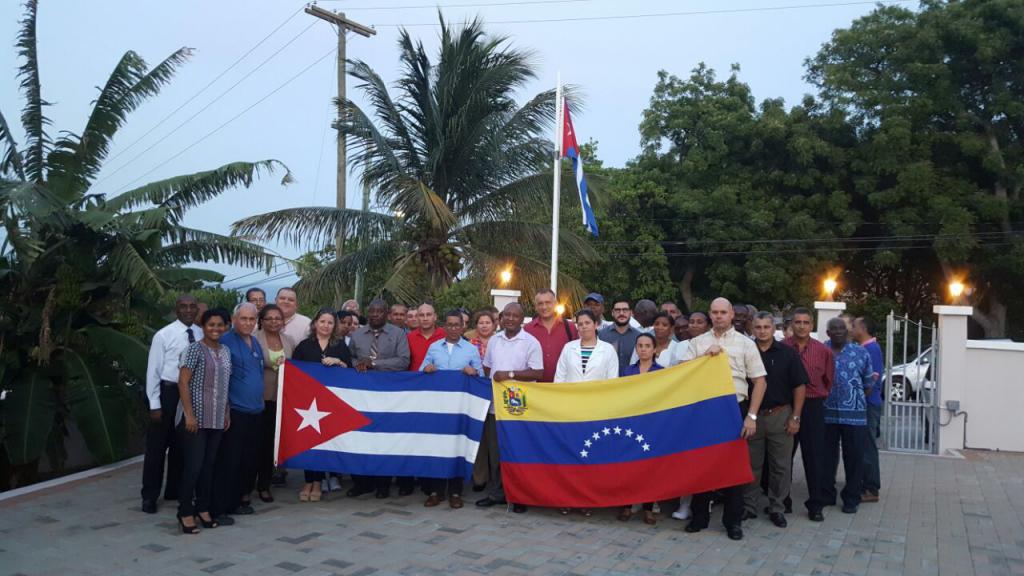 St. John's.19 de mayo 2017:Los colaboradores cubanos de la salud y la Unión de Empresas Constructoras del Caribe (UNECA) que prestan sus servicios en Antigua y Barbuda se dieron reunieron en la sede de la Embajada de Cuba en esa hermana Isla del Caribe Oriental y junto a graduados en Cuba y cubanos residentes, homenajearon a Héroe Nacional en el 122 Aniversario de su caída en combate.