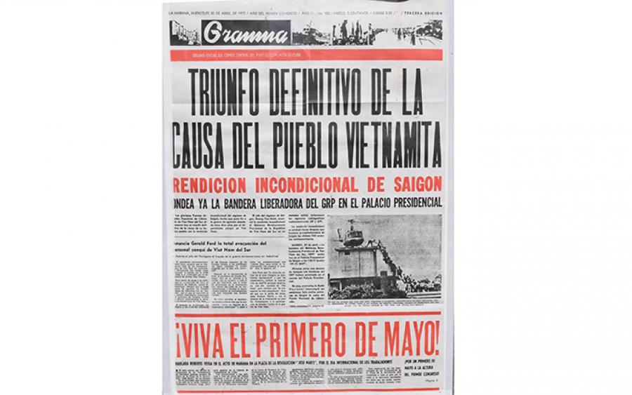 En su discurso durante el acto central por el XXX aniversario de la victoria sobre el fascismo, en el teatro de Lázaro Peña de la Central de Trabajadores de Cuba, Fidel Castro expresó: “Mencionábamos hace unos minutos la victoria del pueblo vietnamita como ejemplo de solidaridad, pero mencionémosla también como ejemplo del heroísmo incomparable de un pueblo. Digamos que la victoria del pueblo vietnamita constituye también una de las más grandes proezas de la historia humana”.