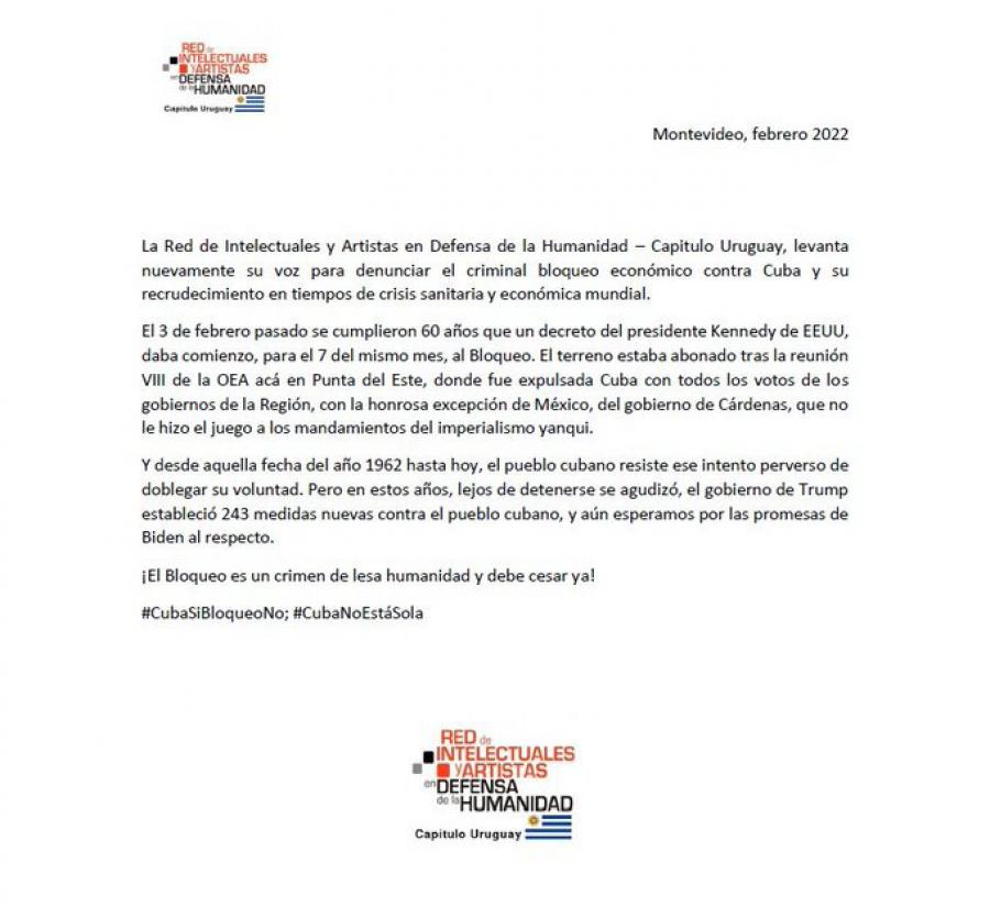REDH-Capítulo Uruguay emitió Declaración de condena al bloqueo de EE.UU contra Cuba