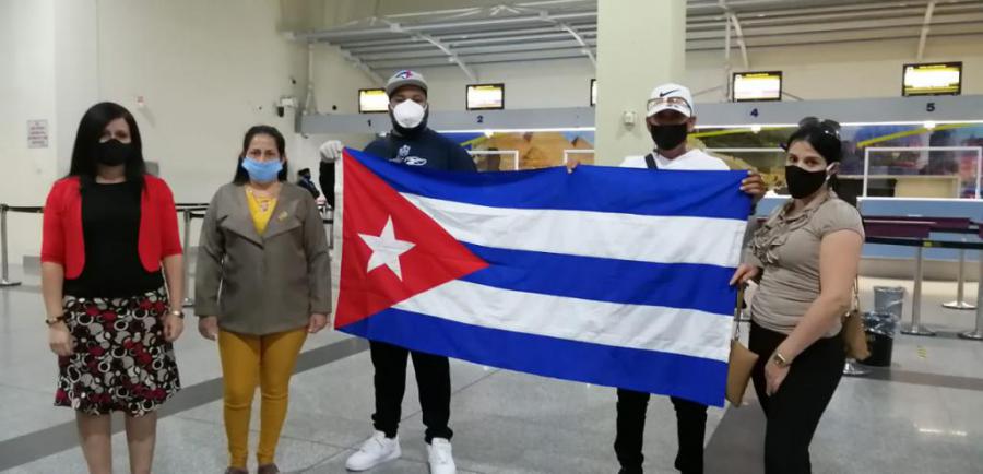 Puerto España, 6 de julio de 2020. Como parte del compromiso del Gobierno Revolucionario con sus nacionales para garantizarles protección y facilidades de regreso al territorio nacional, un segundo grupo de 5 ciudadanos cubanos varados en Trinidad y Tobago viajó hoy a la Patria. Un mes antes, habían llegado a la isla un primer grupo compuesto por 31 connacionales, por lo que ya suman 36 compatriotas evacuados hacia Cuba durante la emergencia sanitaria impuesta por la COVID19. Esta nueva operación es el resultado de la coordinación entre las autoridades cubanas, trinitarias y guyanesas y nuestras representaciones diplomáticas en estos últimos dos países. #CubanosEnElExterior #NaciónYEmigración