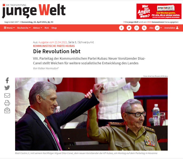 El periódico de izquierda “Junge Welt” destacó el cambio generacional como reto positivo; el escenario en que se desarrolló el Congreso, marcado por la intensificación del bloqueo estadounidense y la pandemia de la Covid 19; así como la confirmación del rumbo socialista para el desarrollo del país.