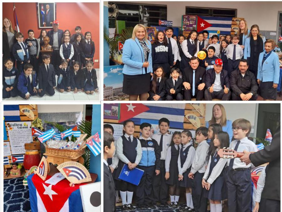 Asunción, 28 de agosto de 2024. Después de realizar una visita exploratoria y didáctica a la Embajada cubana, el Colegio Parroquial Natividad de Santa María decidió que sus alumnos del Tercer Grado representaran a Cuba en el Festival de las Naciones que se organiza en el país por el Dia del Folklore Internacional. Acompañados de maestros y padres, se le brindó una panorámica diversa de nuestros elementos culturales típicos. En la visita al Colegio el día de la presentación, el Embajador expresó que fue un honor compartir esa experiencia y agradeció la demostración cultural pues contribuye a conocerse y revivir los vínculos esenciales entre naciones hermanas.