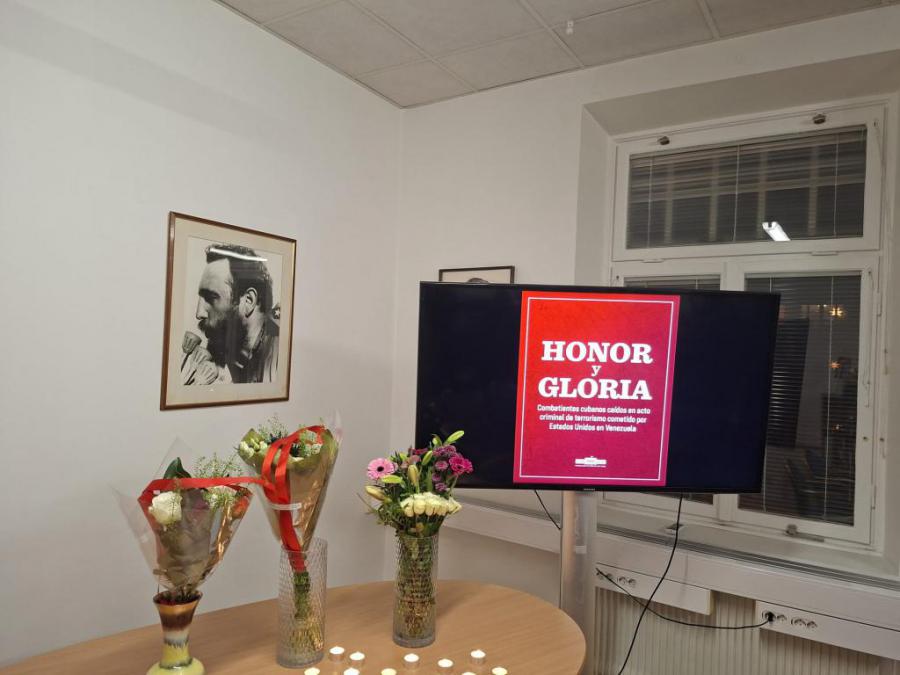Estocolmo, 5 de enero. En la tarde del día de hoy acudieron a la sede de la Embajada de Cuba en Suecia, representantes de la Asociación de Cubanos Residentes y amigos de la solidaridad para rendir tributo a los combatientes cubanos caídos en el acto criminal de terrorismo cometido por Estados Unidos contra Venezuela.