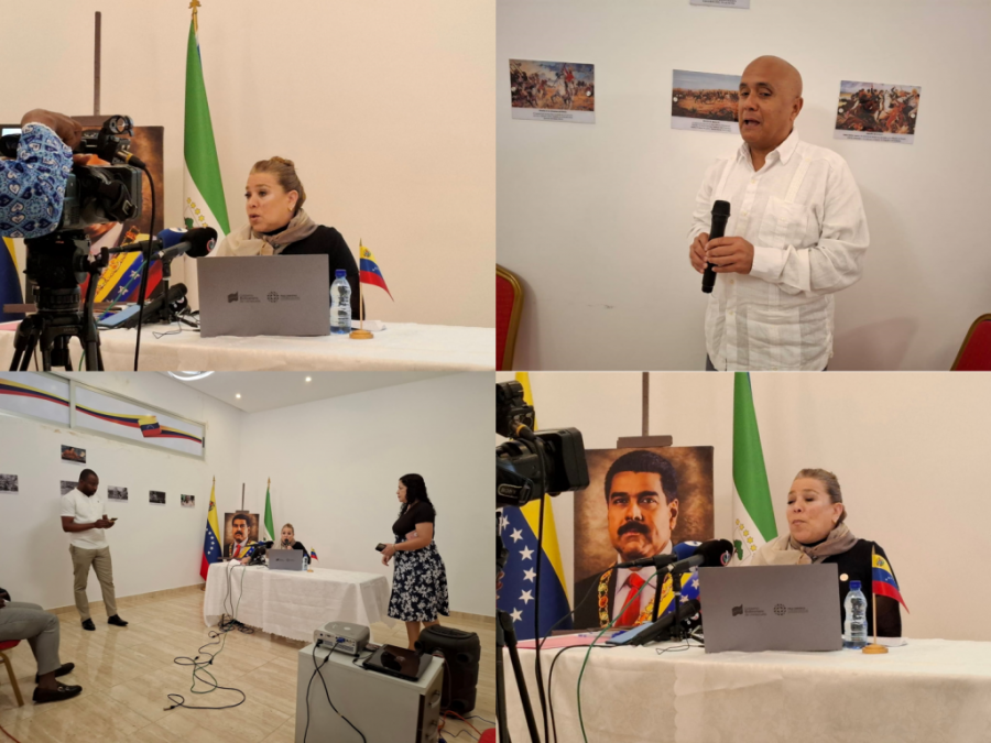 Malabo, 14 de octubre de 2025. El colectivo de la Embajada de Cuba en Guinea Ecuatorial de conjunto con una representación de la Cooperación Cubana en este país, asistió a una conferencia de prensa ofrecida por la embajadora de la República Bolivariana de Venezuela en este país, Sra. Ana Pino Pasquier.