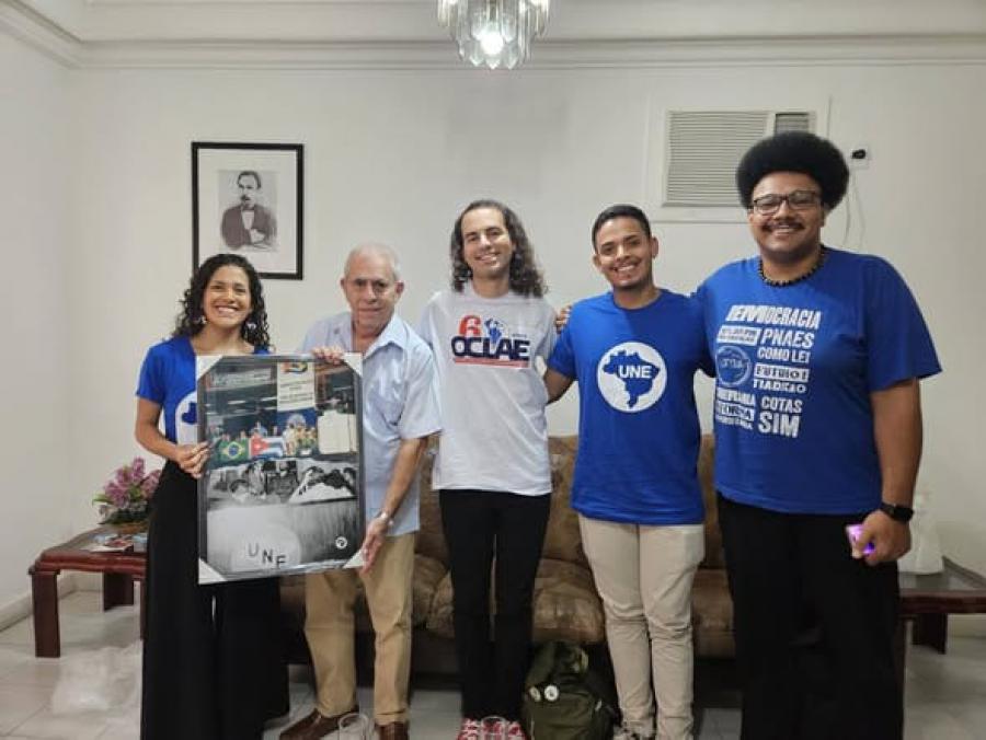 También obsequiaron un cuadro con dos fotos del Comandante en Jefe, Fidel. Una del año 1959, cuando realizó una visita a la sede de la UNE, en Río de Janeiro; y la otra, del año 1999, en un Congreso de la UNE que tuvo lugar en Belo Horizonte, capital del estado de Minas Gerais.