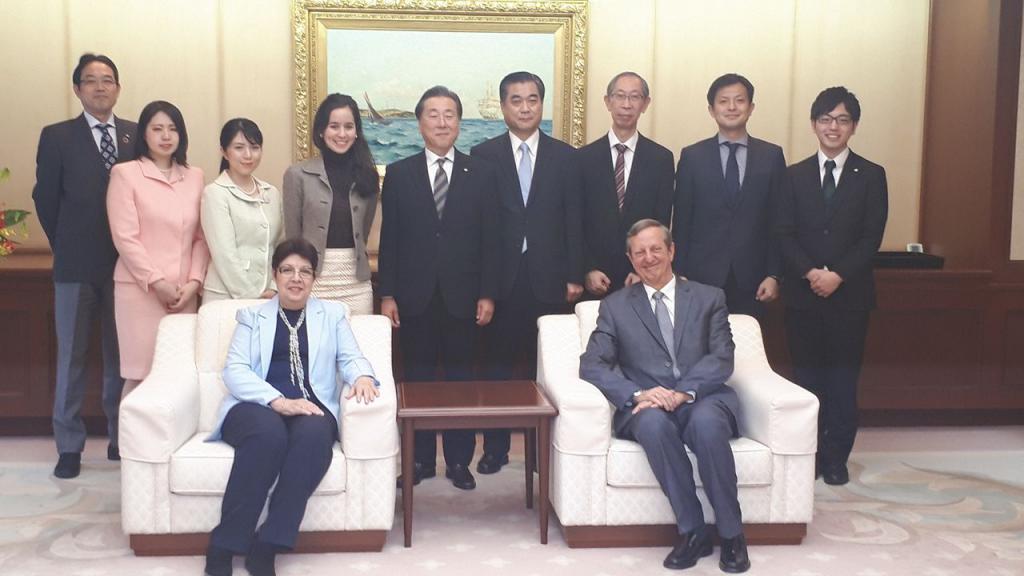 Tokio, 24 de enero de 2020-. Una cálida bienvenida al Embajador de Cuba Miguel Angel Ramírez ofrecieron en su sede directivos y trabajadores de la Asociación de Conciertos Min On, donde sostuvo un animado intercambio con su Presidente Ito Kazuto.