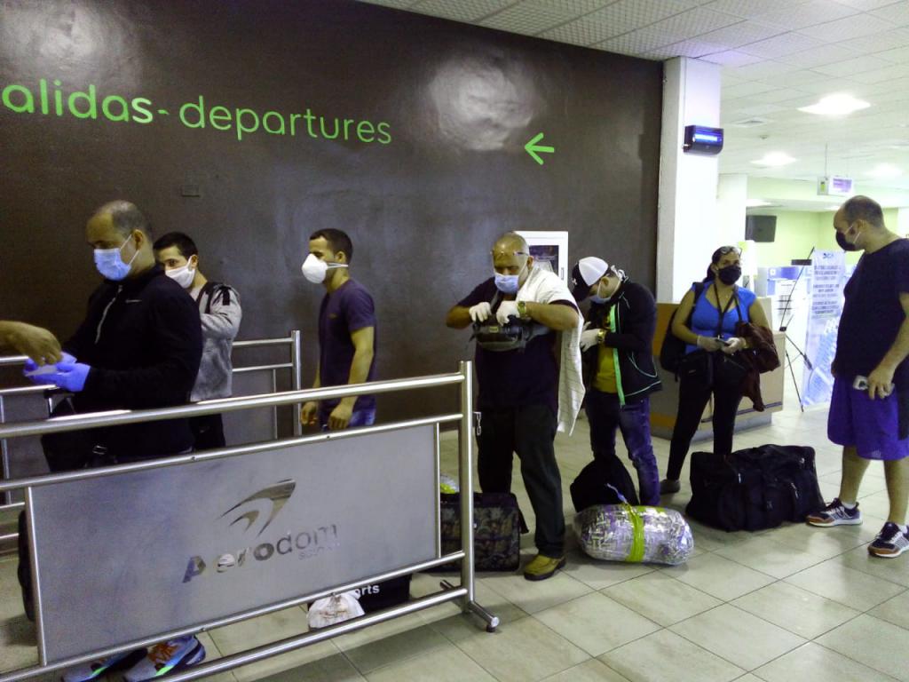 Santo Domingo, 20 de abril de 2020. Un quinto grupo de cubanos varados en la República Dominicana, retornaron hoy a su país en un vuelo chárter de Helidosa con el apoyo del Consulado de Cuba en Santo Domingo.