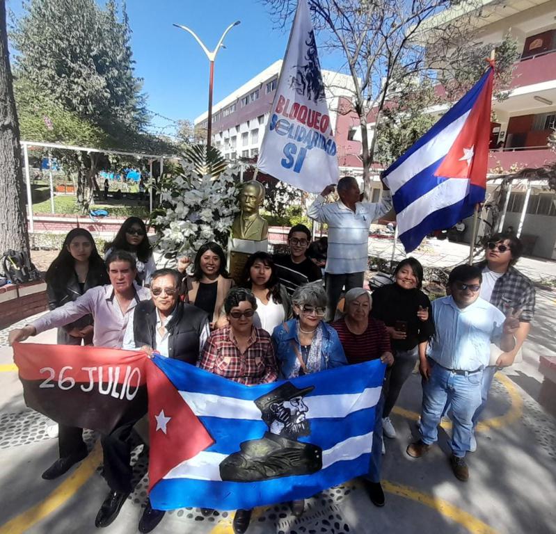 Lima, 21 de julio: La Coordinadora Peruana de Solidaridad con Cuba de conjunto con la Casa de la Amistad peruano-cubana del departamento de Arequipa realizaron un emotivo acto en el que colocaron frente al busto del Héroe Nacional de Cuba, José Martí, una ofrenda floral con motivo del 70 aniversario del asalto a los cuarteles Moncada y Carlos Manuel de Céspedes.
