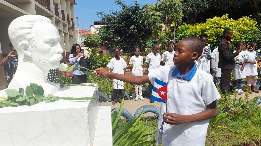 Cubanos y angoleños rindieron homenaje al Héroe Nacional de Cuba, José Martí, en la escuela que lleva su nombre en esta capital, al cumplirse el 28 de enero el aniversario 171 del natalicio del prócer.
