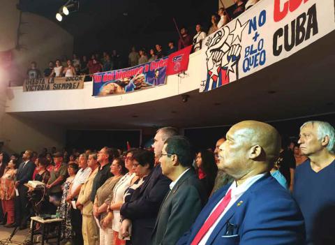 Con un banderazo protagonizado por jóvenes arrancó el acto, convocado por el Movimiento de Solidaridad, y en el que estuvieron presentes dirigentes políticos y sociales, parlamentarios, miembros del cuerpo diplomático, amigos de la isla y cubanos residentes aquí.