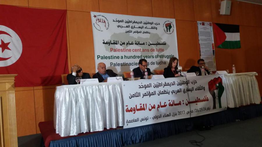 Túnez, 24 de marzo de 2017. En la mañana de este viernes tuvo lugar en el salón de ceremonias del hotel África en la capital tunecina, la inauguración del Octavo Coloquio de partidos políticos de izquierda organizado por el Partido de los Patriotas Demócratas Unificados, PPDU, dedicado a los cien años de lucha del heroico pueblo palestino y donde se rindió homenaje al Líder histórico de la Revolución cubana.