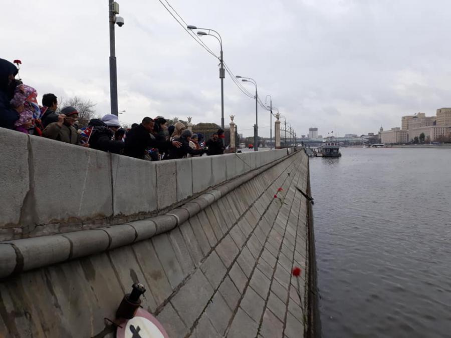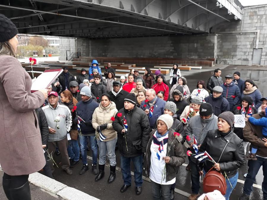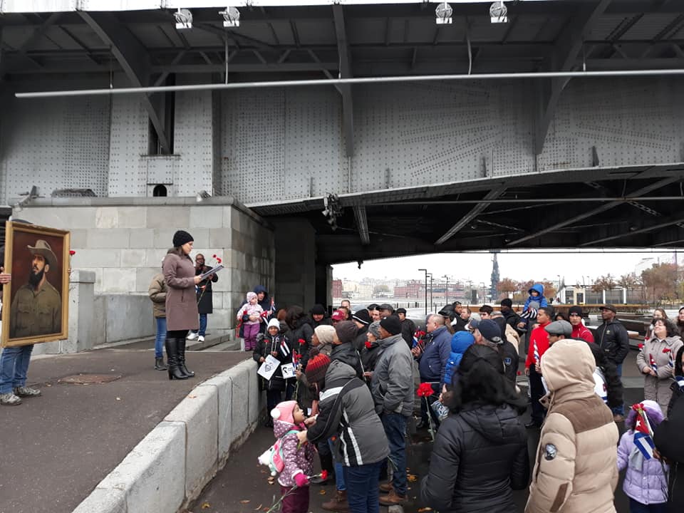 Tras una breve peregrinación sorteando las condiciones invernales, la representación de la Isla llegó hasta las márgenes del río Moscú. Desde allí se pronunciaron palabras y poemas de sentido homenaje al Héroe de Yaguajay.