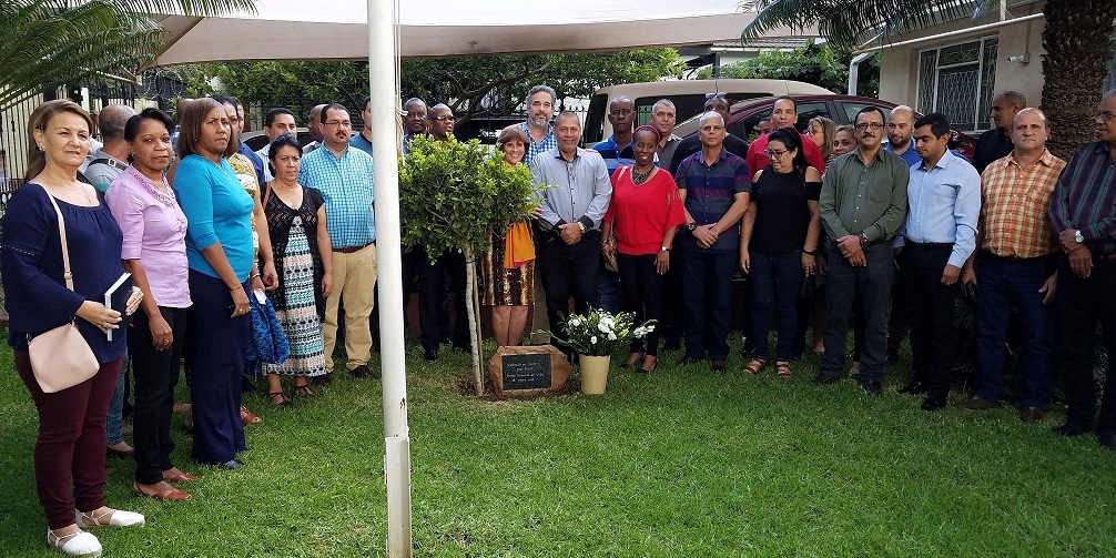 Pretoria, 28 de enero de 2019.- Miembros de la Embajada de Cuba, integrantes de las misiones de colaboración y cubanos residentes en Sudáfrica, se dieron cita para rendir homenaje al Héroe Nacional de Cuba, en el marco del 166 aniversario de su natalicio.