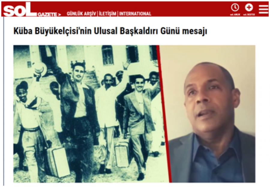 Como parte de la celebración de la Embajada antillana, la misma organizó una jornada previa de trabajo voluntario en la sede diplomática y su Embajador, Luis Alberto Amorós Núñez, dirigió en la víspera un mensaje de video a los amigos de Cuba en Turquía, que fue publicado por la reconocida publicación Sol Internacional, como parte de un artículo sobre la significación del Día de la Rebeldía Nacional cubano. Este material fue difundido además por las plataformas de redes sociales del movimiento de solidaridad, el Partido Comunista de Turquía y la Embajada.