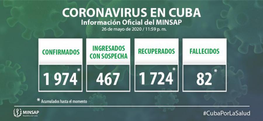 - Ciudadano cubano de 60 años de edad, residente en el municipio Playa, provincia La Habana. Contacto de caso confirmado anteriormente. Se mantienen en vigilancia 14 contactos.