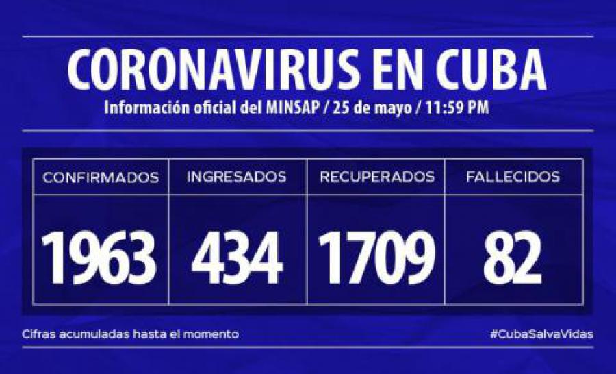 Al cierre del día de ayer, 25 de mayo, se encuentran ingresados en hospitales para vigilancia clínica epidemiológica 434 pacientes. Otras mil 823 personas se vigilan en sus hogares, desde la Atención Primaria de Salud.