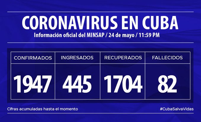 - Ciudadano cubano de 39 años de edad, residente en el municipio Cerro, provincia La Habana. Contacto de caso confirmado anteriormente. Se mantienen en vigilancia 23 contactos.