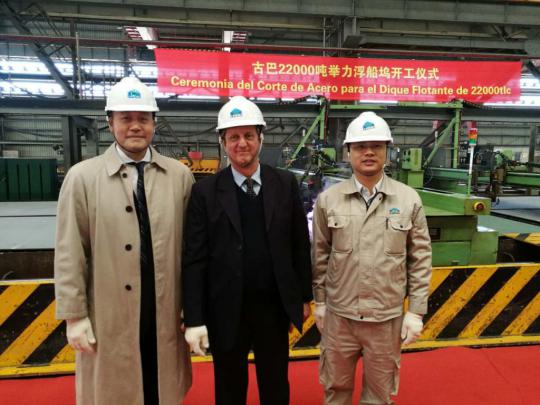CHINA, 6 de diciembre de 2017 con la presencia del Embajador de la República de Cuba en la República Popular China, Miguel Angel Ramírez, se celebró la ceremonia de inicio de construcción de un dique flotante para los astilleros cubanos.