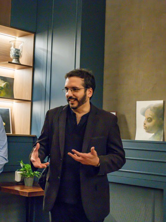 La exposición reunió una selección de obras recientes del creador, caracterizadas por un lenguaje visual contemporáneo, experimental y de fuerte carga expresiva. A través de composiciones simbólicas y atmósferas sugestivas, el artista ofreció al público una mirada personal que conecta imaginarios habaneros con estéticas de vanguardia. Su Excelencia Alexander Valentín Rodríguez Salazar, Embajador Extraordinario y Plenipotenciario de la República de Cuba en Rumanía, invitó al cuerpo diplomático, a la comunidad artística y al público general a este encuentro cultural, que fortaleció los vínculos entre Cuba y Rumanía y permitió apreciar el talento de un creador en plena madurez artística.